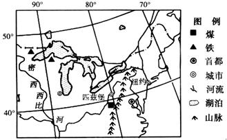 参考答案:(1)美国碳排放工业主要分布在东北部五大湖沿岸。(2分)集中的主要是钢铁工业部门。(2分)