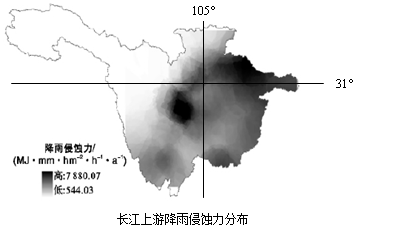 材料一:受自然和人为因素影响,长江上游山丘区水土流失加剧。图为长江上游降水侵蚀力分布图。
