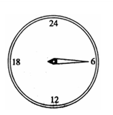 5、单选题 右下图是一口24小时的全日时钟,指针为时针;因为地球自转一周,时针也刚好转了一周,所以时针可以看成是某地的经线,完成1~2题。