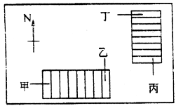 2、单选题 在台湾12月的某一天,艳阳高照,建华骑机动车去某单位,在上午10点左右抵达,预计下午2点离开。机动车停车场如图所示,有遮棚,棚高约2米,甲、乙、丙、丁为四个空的停车格。为了避免这一段时间阳光照射,使机动车太热,他应该选择哪一个停车格最适当(?)