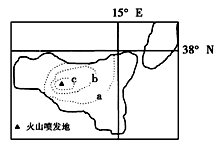 【小题1】图中火山灰厚度等值线,a<b<c,等值线西南密集,东北稀疏,可以判断该地盛行西南风。由经纬度判断图示地区位于30°—40°地中海沿岸,地中海气候,冬季受盛行西风影响。