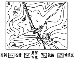 (1)根据图中指向标判断:D在E的南方,F点位于900米等高线上,所以F的海拔高度是900米