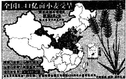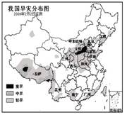 5、单选题 2008年11月至2009年2月,我国各地连发的高级别旱灾,全国近43%的小麦产区(主要为冬小麦区)受旱,370万人、185万头大牲畜发生饮水困难。读图回答问题。