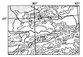 2、综合题 2012年7月31日凌晨,新疆伊犁新源县阿热勒托别镇卓勒得沟一铁矿厂因暴雨引发泥石流及山体滑坡。下图为新疆伊犁河流域示意图(单位:m)。据此回答下列各题。