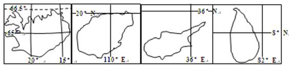 A.冰岛、海南岛、塞浦路斯岛、斯里兰卡岛
