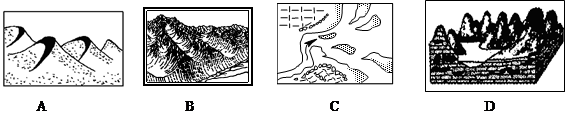 2、单选题 下列各图属于分布我国云贵高原地区典型地貌的是( )