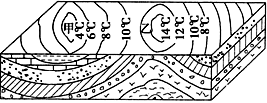 5、单选题 读图“等温线及地质剖面图”,回答题。