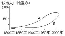 (1)A、B两条曲线中代表发达国家城市化进程的是________曲线,代表发展中国家城市化进程的是________曲线。