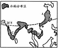 4、综合题  读亚洲水稻分布示意图,回答下列问题。(9分)