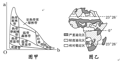 小题1:根据各自然带在图甲中的位置,能得出的正确结论是:
