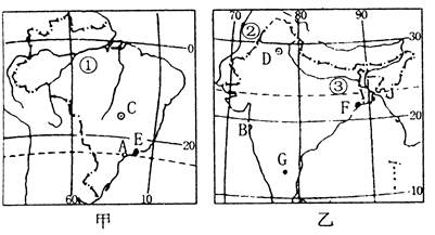 1、综合题 .图15中,甲、乙两图分别为世界某两个重要的国家的地理简图,读图回答下列问题。
