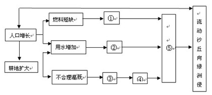 (3)请将下面导致绿洲环境恶化的字母与图中数字代号和内容相搭配。