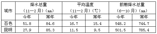 ? 温比常年同期高,蒸发量增大。纬度低,蒸发旺盛,地表水少;喀斯特地貌广布,地形崎岖、多地下