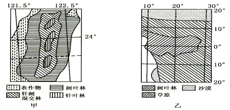 1.影响甲乙两地植被分布的主导因素分别是2.有关乙图中草原带的说法正确的