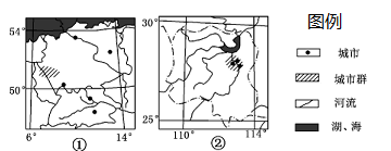 小题1:根据图中经纬度可知①为德国,主要为温带海洋性气候;②为我国湖南省,为亚热带季风气候。故①②两图所示区域共同的自然特征是河流众多,水源充足。故选B。