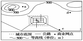 小题3:a、b、c、d四地按商业网点经济效益的高低排序正确的是( )