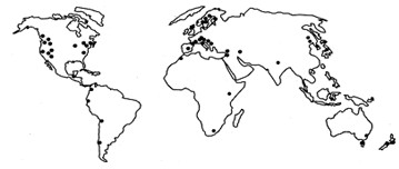 2、单选题 读世界主要滑雪场分布图,回答23~24题。