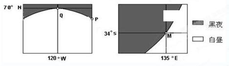 (3)M地位于Q的?方向。M地日出时间?点,当天白昼长?小时(3分)