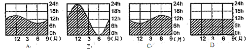 小题2:下面四幅昼夜长短的季节变化示意图(阴影部分为黑夜)中,表示乙地的是(?)