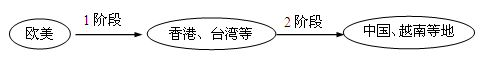 小题1:图示反映由经济发达地区向经济欠发达地区迁移,故以劳动力指向型产业为代表,