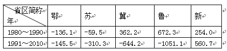 3、单选题 下面表格反映了我国某农作物的主产省区在1980~2010年种植面积的变化(单位:千公顷)。读表完成下列各题。