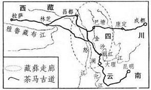 材料四:“茶马古道”是云南、四川与西藏之间的古代贸易通道,由于是用川、滇的茶叶与西藏的马匹、药材交易,以马帮运输,故称“茶马古道”。汉文史料中多有藏人“嗜茶如命”字样;藏地民谚有“汉家饭果腹,藏家茶饱肚”之说。早在汉唐时,这条以马帮运茶为主要特征的古道就发挥作用了。