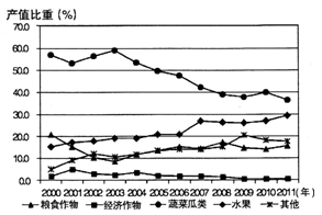 小题2:蔬菜瓜类产值所占比重稳居第一位的主要原因是