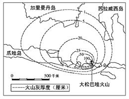 【小题1】根据火山灰厚度的分布情况,可推测火山爆发期间的盛行风是