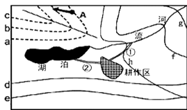 5、单选题 图所示区域中a、b、c线为等压线,箭头表示A地风向,d、e线为等温线,g、f、h线为等高线, ①、②为该地设计的引水渠。读图完成下题。