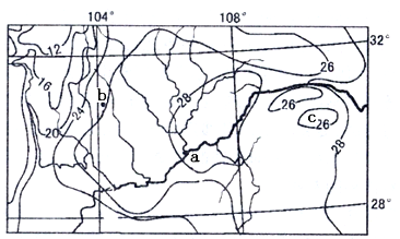 1.读图,等值线图数值的变化规律是按递增或递减的顺序。据此,结合图中数据,可以判断,a的取值范围是28-30之间,b的取值范围在24-26之间,c的取值范围在24-26之间。所以B对。A、C、D错。