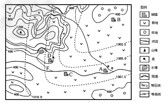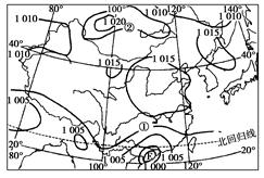 2、综合题 下图是我国某地区地形等高线及某时刻海平面等压线图。读图回答下列问题。