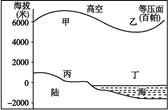 D.丙、丁之间风从陆地吹向海洋