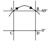 1、单选题 下图为一方格状经纬网示意图,图中A、B两地相距33.3厘米,地方时相差4小时。据此回答下题。