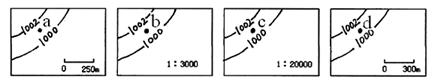 5、单选题 下面四幅等压线分布图中的a、b、c、d四地中,风速最大的是
