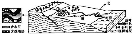 ( 1)海陆间循环(1分) 向斜(1分) 背斜(1分)