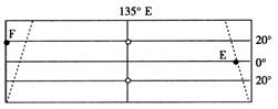 C、F点的经度为45°E