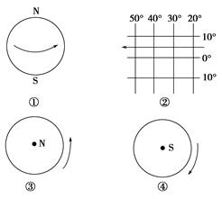 4、单选题 下列四幅图中,正确表示地球自转方向的是( )