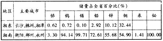(4)湖南省有色金属矿产资源的特点有哪些?比较分析湘东和湘南地区发展有色金属工业的有利条件。