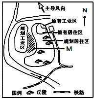 A、居住区紧靠旧城、临近铁路