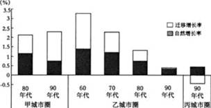2、单选题 下图为三个城市圈20世纪不同年代人口增长示意图。读图回答