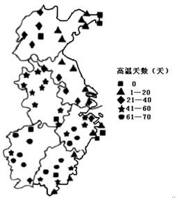 小题2:图中有8处高温日数为0,这些地点从来没有出现过高温天气的原因可能是(?)