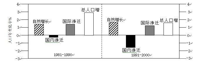 4、单选题 图示意某城市20世纪80年代和90 年代平均人口年变化率,当前该城市中人口约1300万。据此完成题。