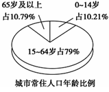 小题2: 解读“城市常住人口年龄比例”图,不太合理的是