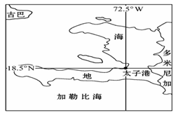 本题考查根据经纬网判断方向。根据纬度判断南北方向。太子港的纬度为18.5°N,所以位于南方;根据经度判断东西方向,太子港经度为72.5W,位于74°W的东方。所以地震地点位于纽约的东南方。所以本题选择B选项。