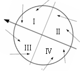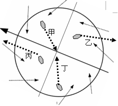 2、单选题 图示圆圈为台风系统,该系统分成四个区域,短箭头表示风,长箭头表示台风整体移动方向,回答下列各题。