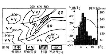 1、综合题 读我国东部某区域等高线图和该地气候资料图,指出该地区泥石流灾害多发的自然原因并提出防御措施。