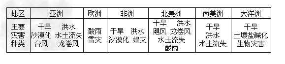 阅读世界主要农业灾害的分布表,分析回答1-3 题。