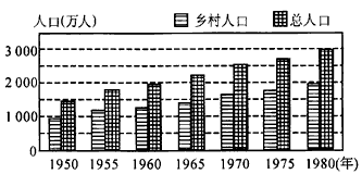 5、单选题 下图是“某地区1950——1980年人口增长图”,读图回答第1—2题。?
