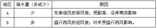 参考答案:(1)①纬度低,太阳辐射强,气温高;②降水少,日照时间长;③湿度小,蒸发大;④近海产品产地。