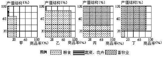 4、单选题 下图表示“四个地区农业产值结构和商品率示意图”,关于四个农业类型所在地区农业生产特点的说法,最可能正确的是(?)